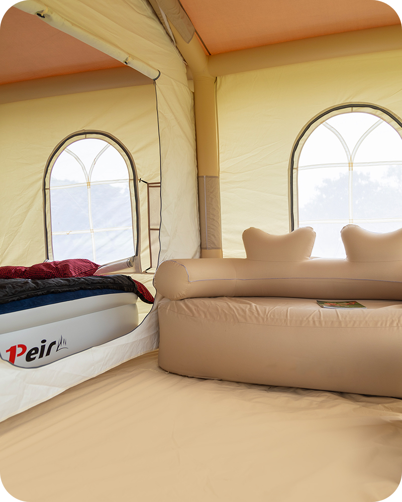 The Coleman brand has long been known for its quality outdoor products, and Peirhw's inflatable tents are smartly designed and made from high-quality thermostatic fabrics to maintain a comfortable temperature. The tent is equipped with air conditioning circulation ports and chimney circulation ports to provide good ventilation and air circulation. In addition, a complimentary waterproof canopy and manual inflatable pump are provided for your convenience during outdoor activities. With a solid structure and a firm and reliable support system, the tent is able to withstand the wind and rain, providing a reliable shelter for outdoor adventures. Whether you are camping, hiking or open-air activities, Peirhw's inflatable tents are your ideal companions, and together with the Coleman brand, we can create the perfect experience for your adventure.